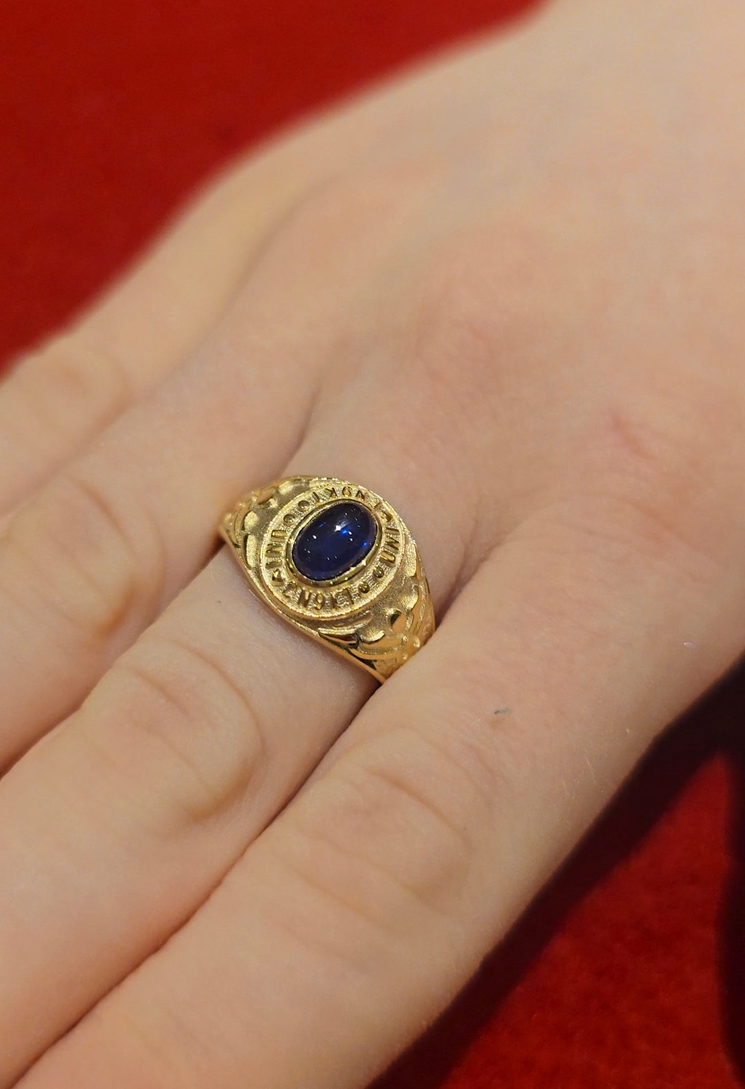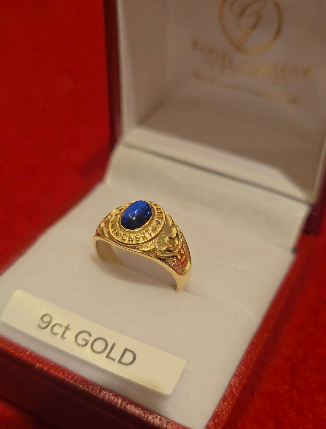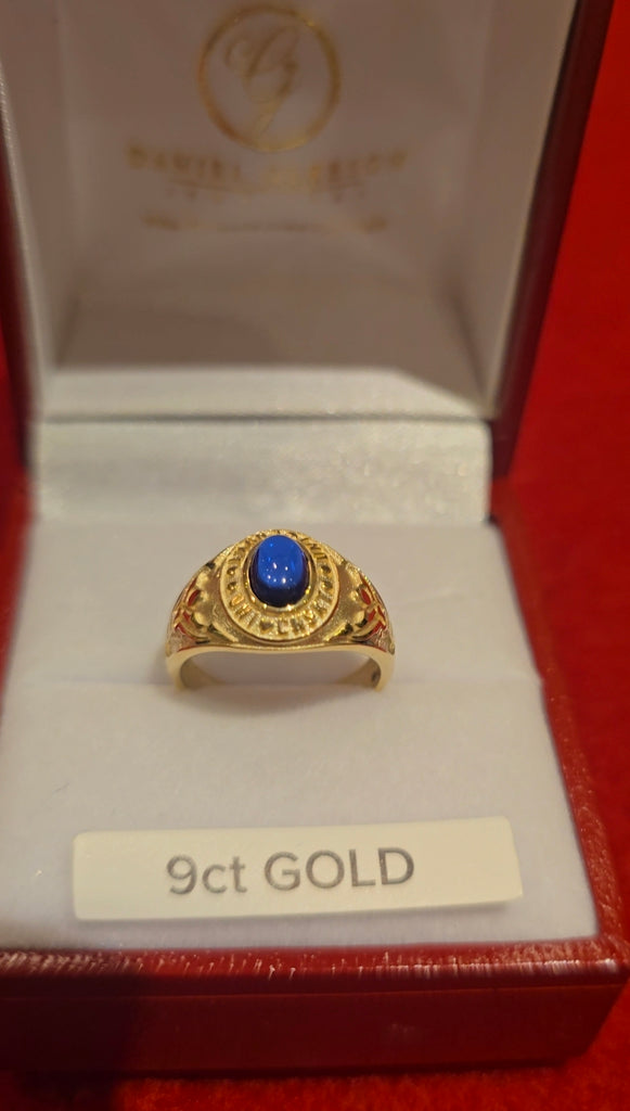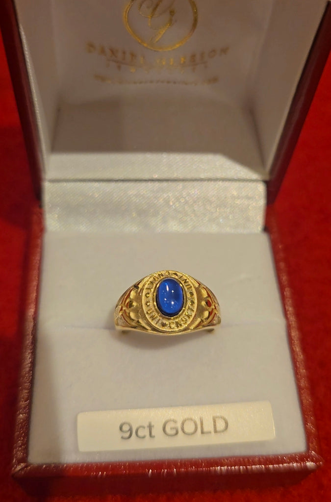 9ct Gold Blue Stone Cabochon Childrens College Ring