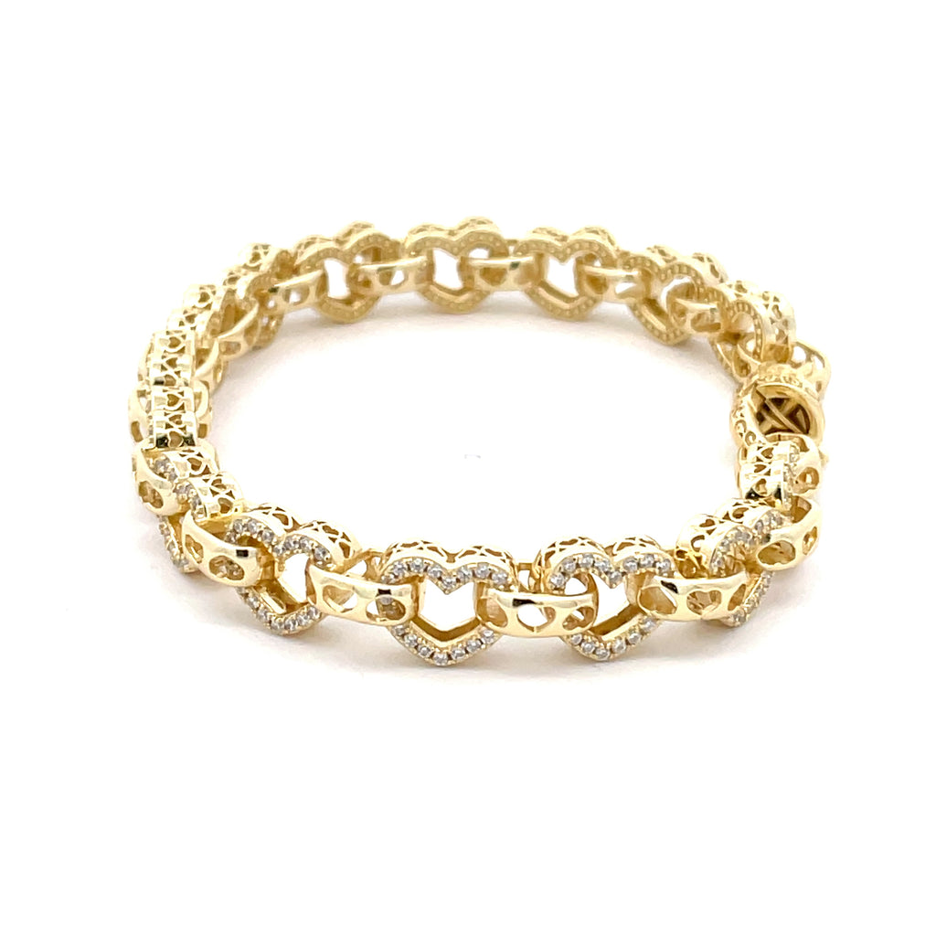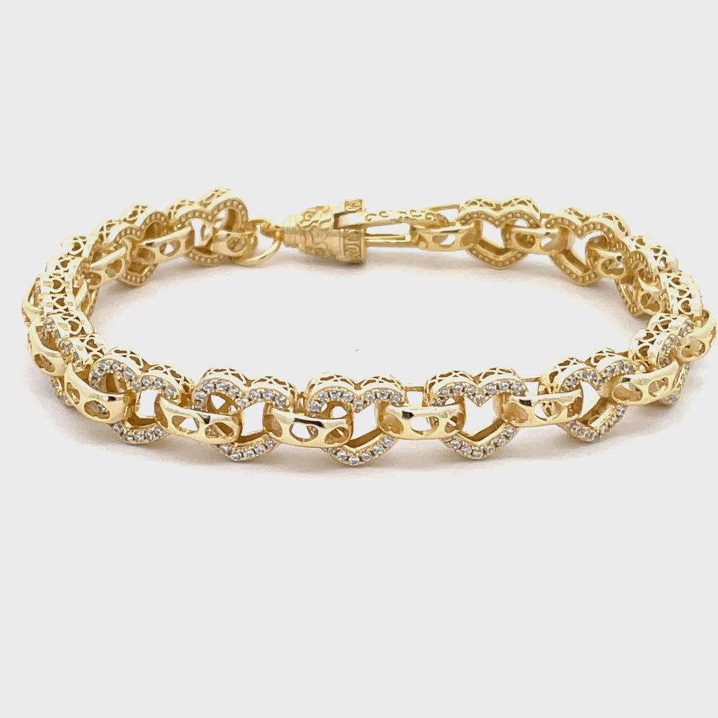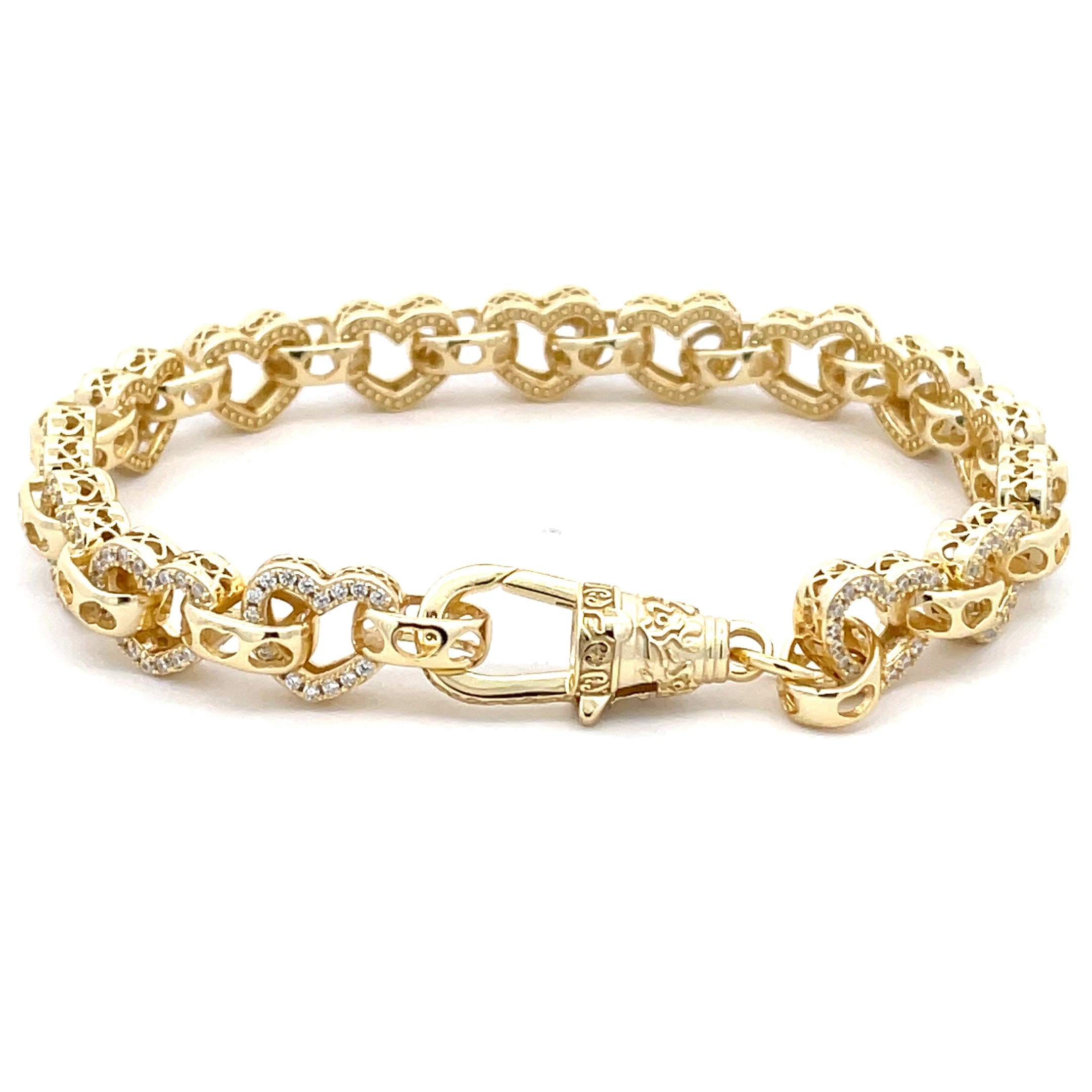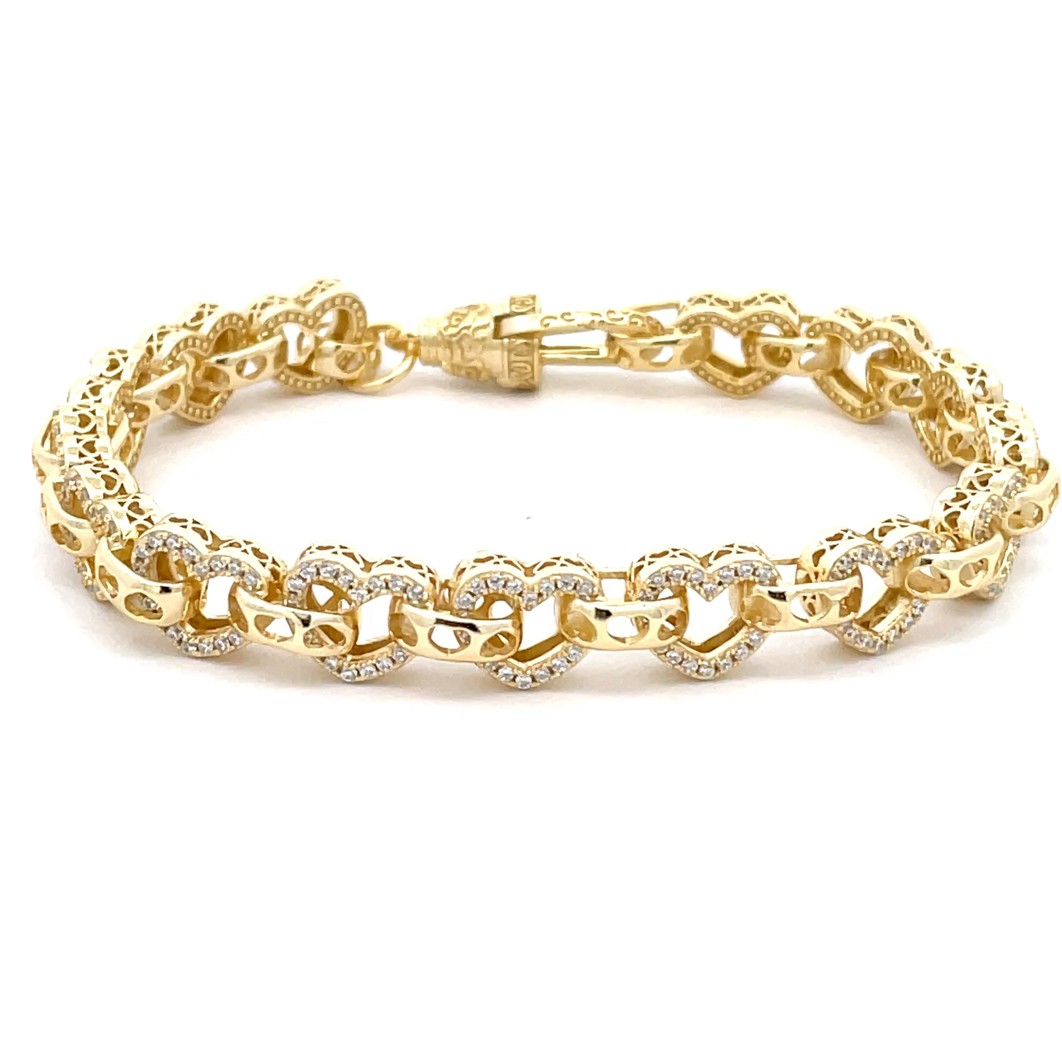 Gold on Sterling Silver 'Chunky' 9mm Heart link CZ Bracelet
