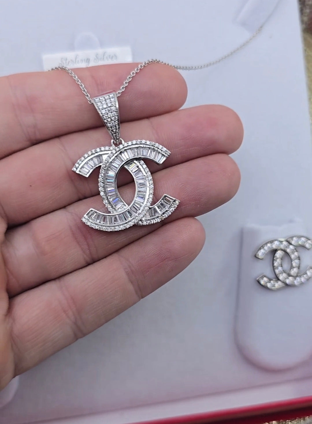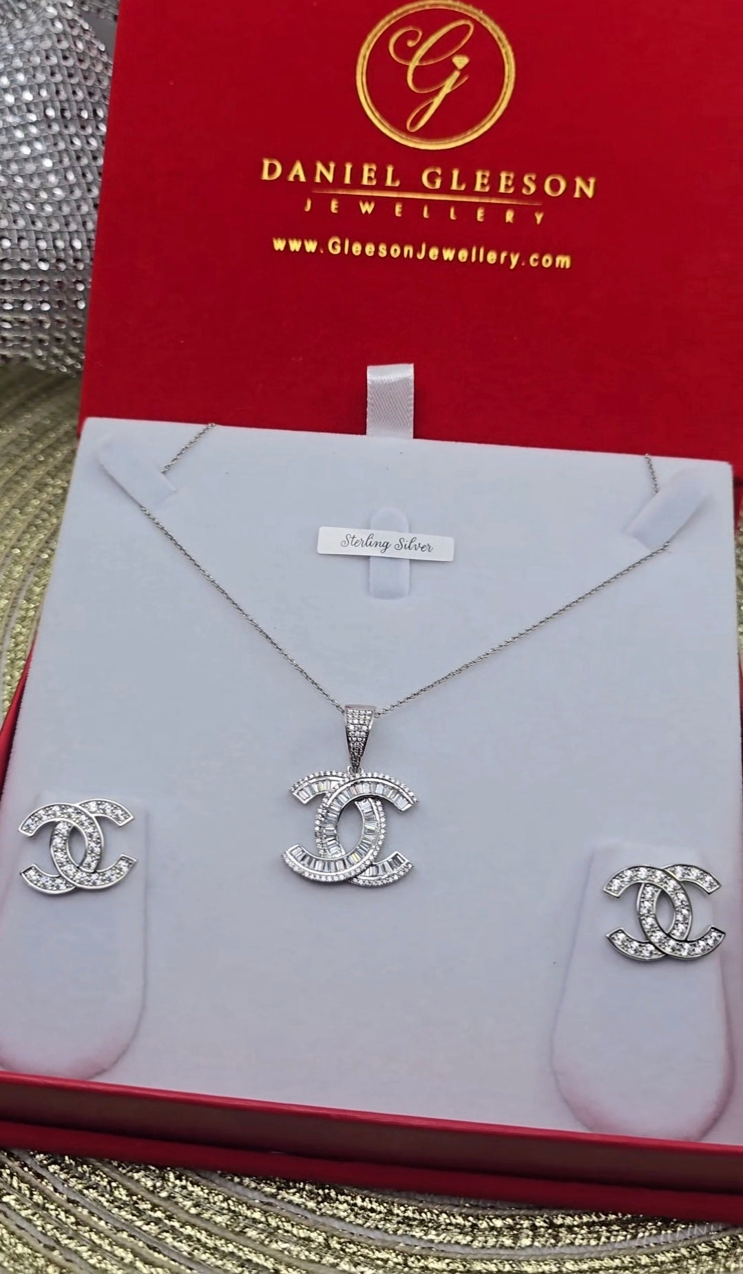 Sterling Silver Necklace and earrings Set Complete with Large Red Velvet Gift Box