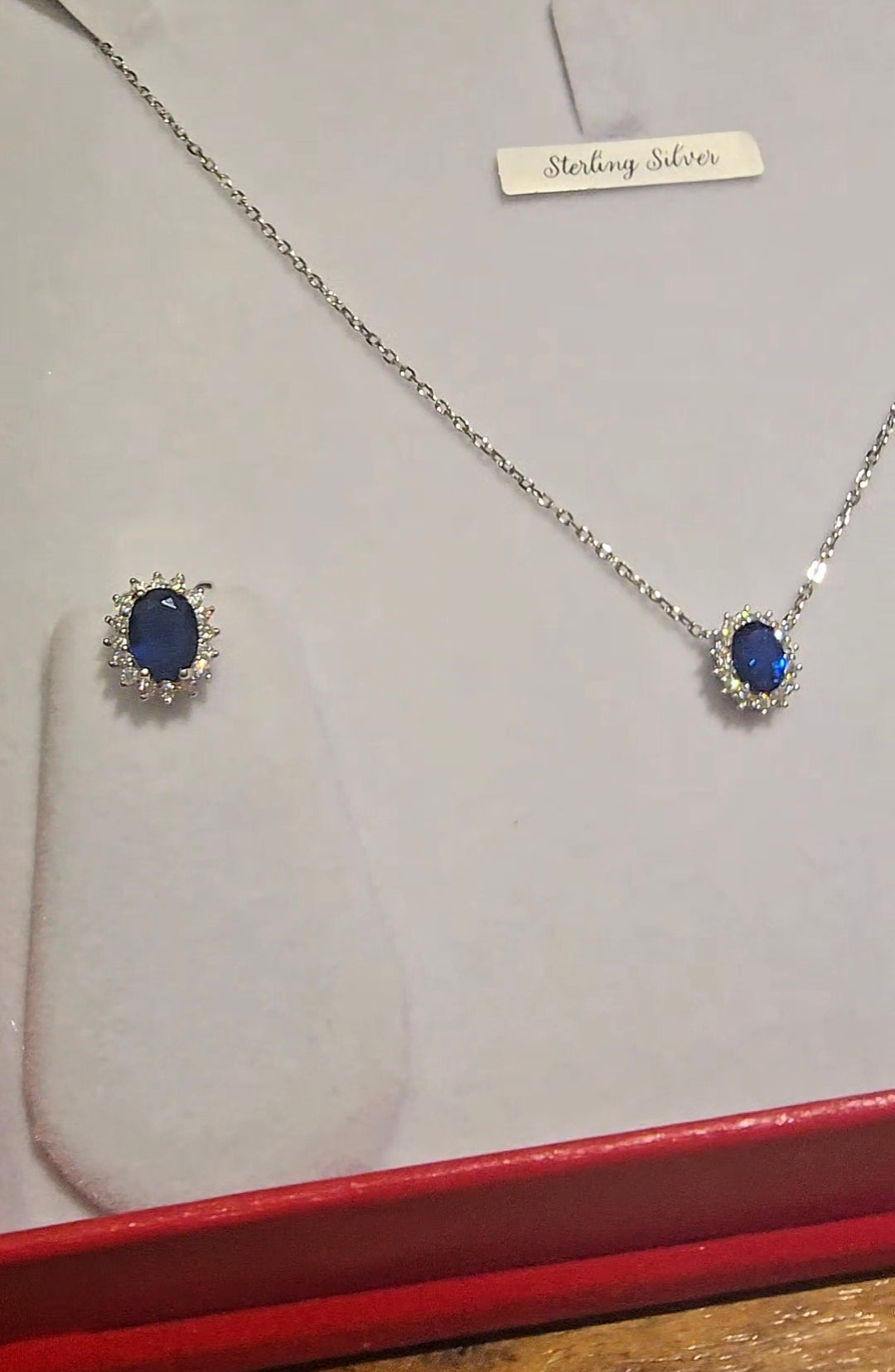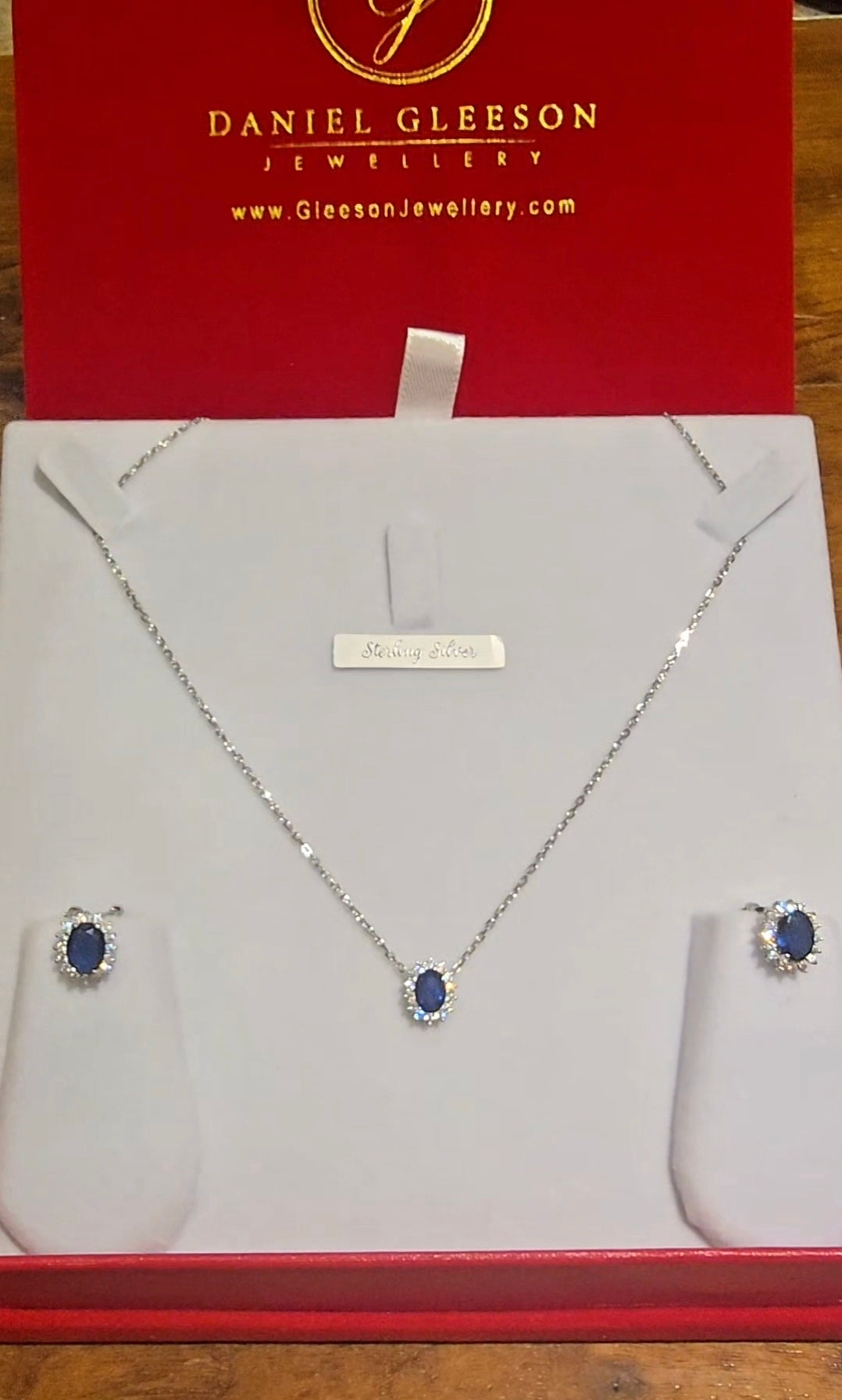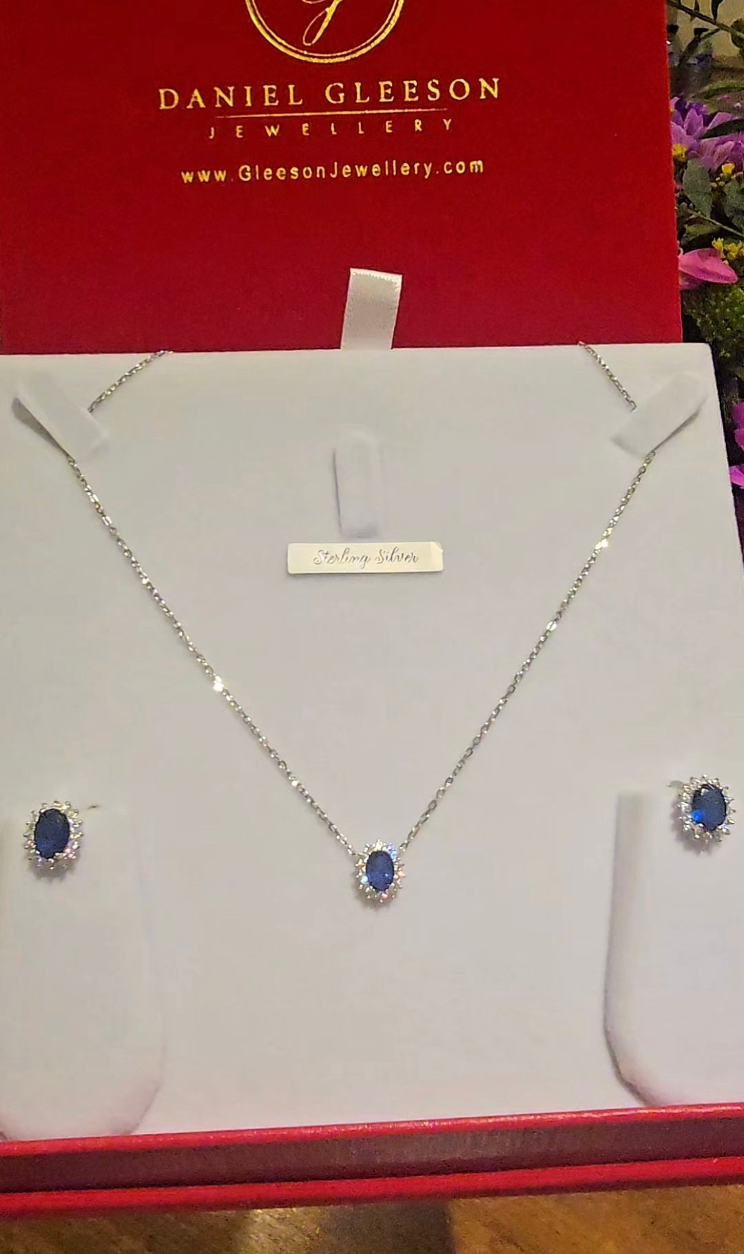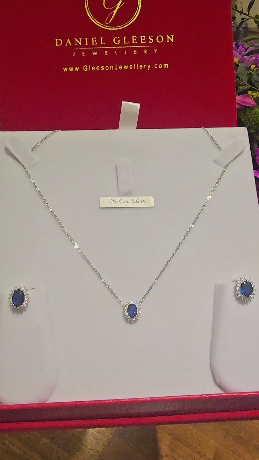 Sapphire Necklace & Earrings 'Stephanie' Sterling Silver Set & Red Velvet Gift Box