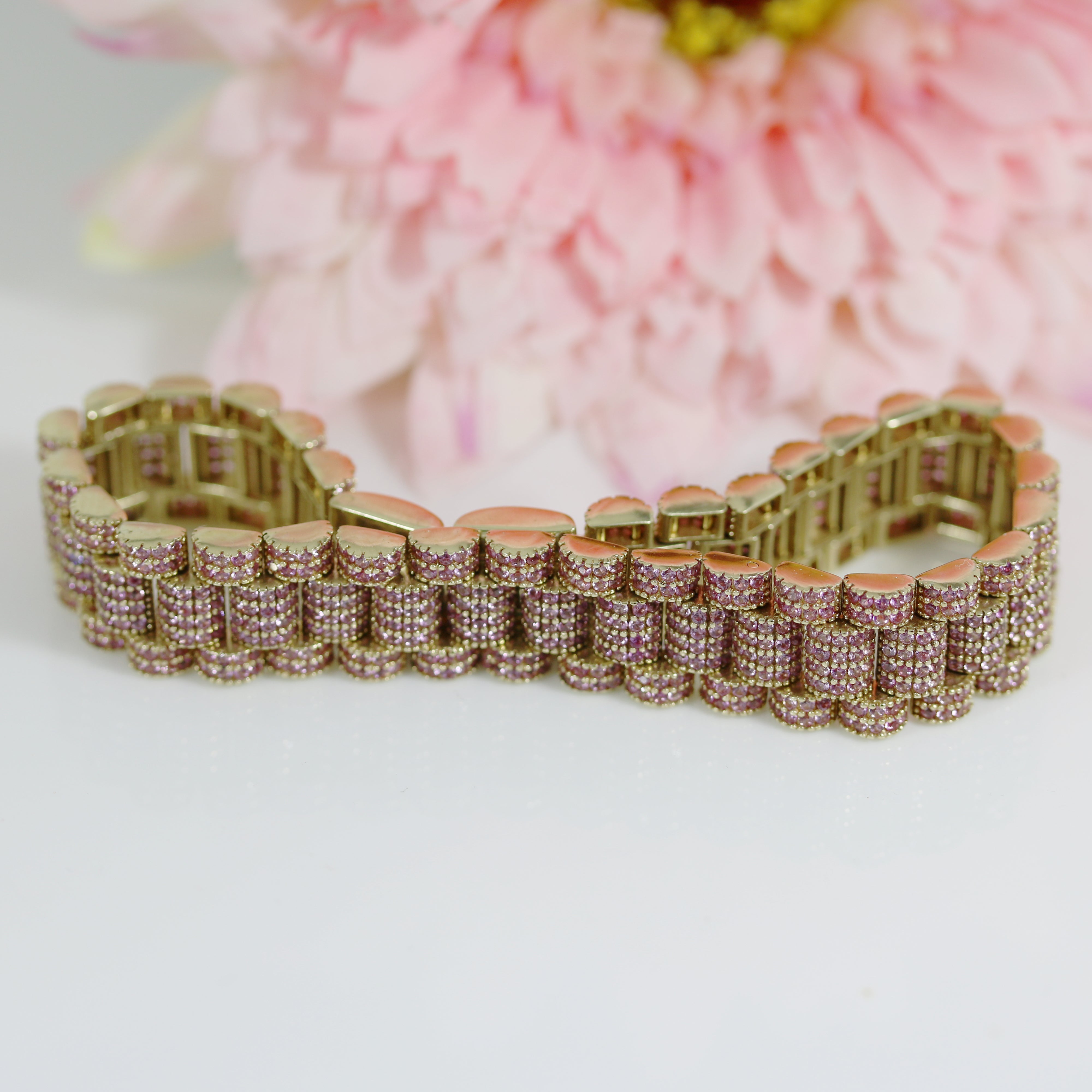 9ct Gold Pink Cubic Zirconia Ladies Presidential Style Bracelet