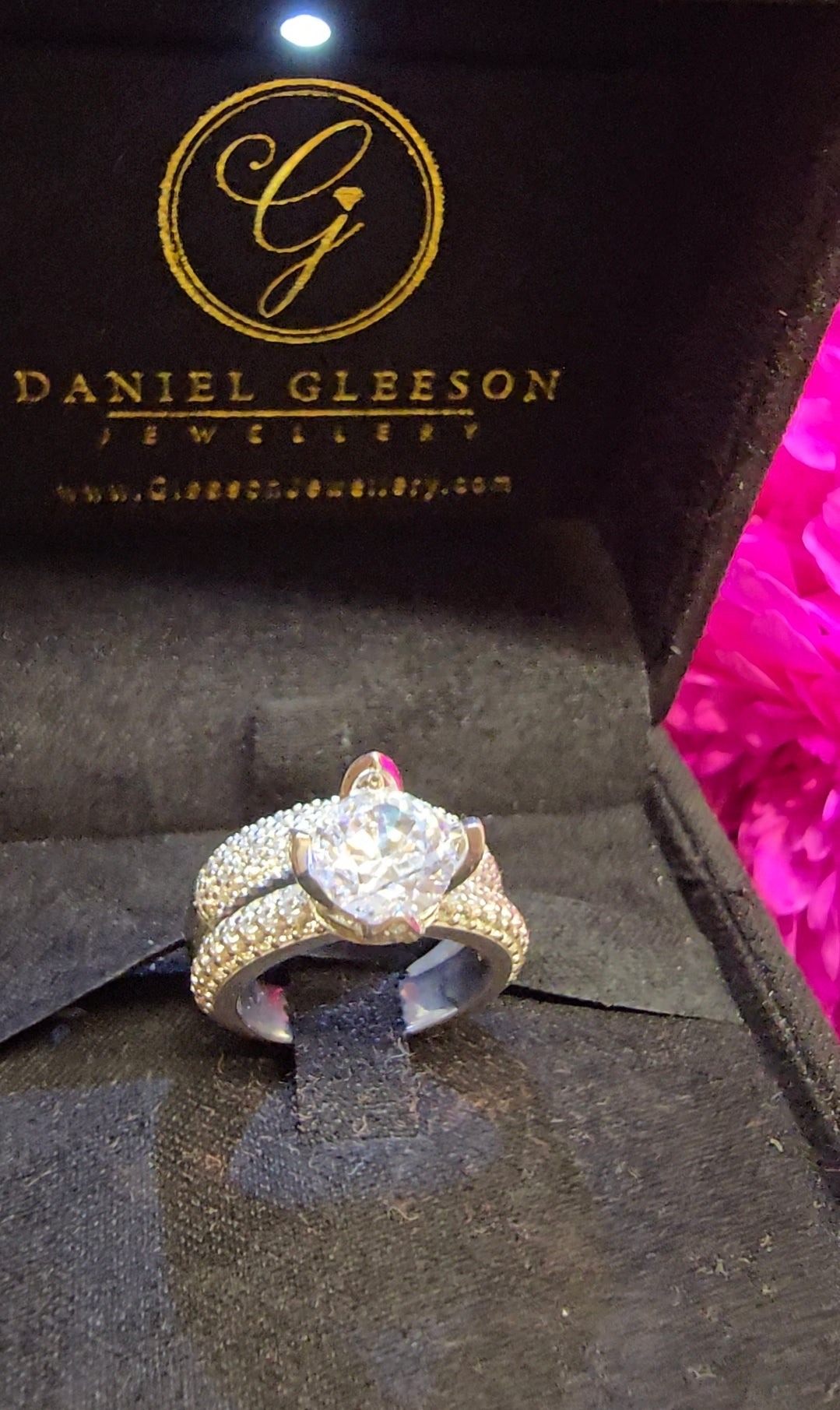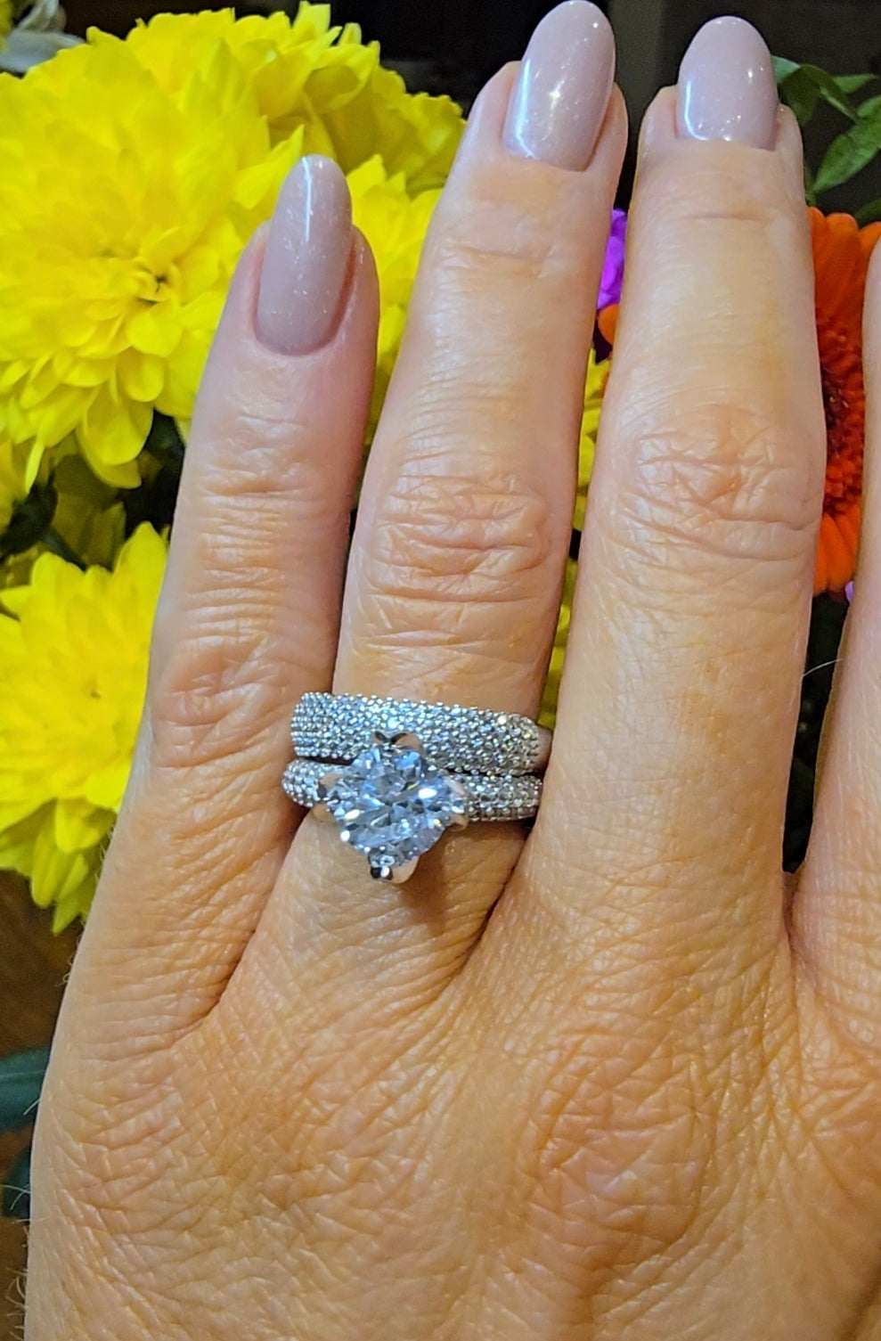Beautiful Round Cut Cubic Zirconia Stone Ring Set, accompanied by a 9ct Gold Cubic Zirconia Pavé Band.