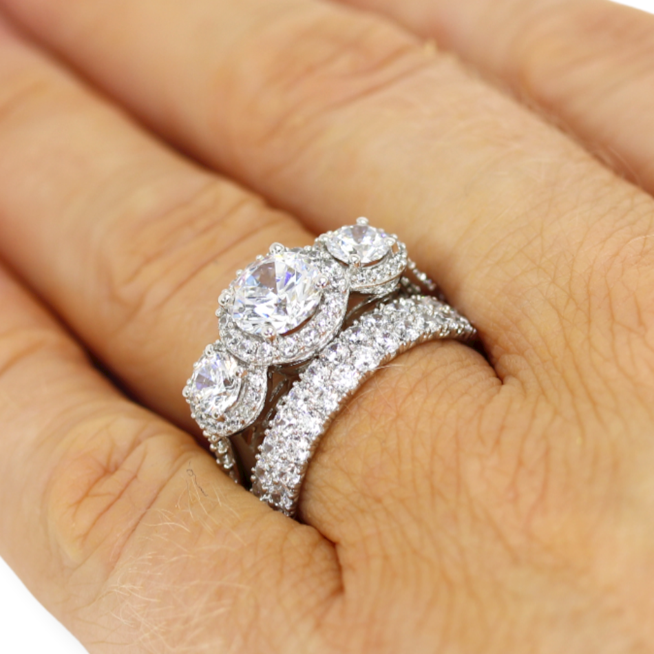 9ct White Gold Cubic Zirconia Trilogy Halo Ring Set
