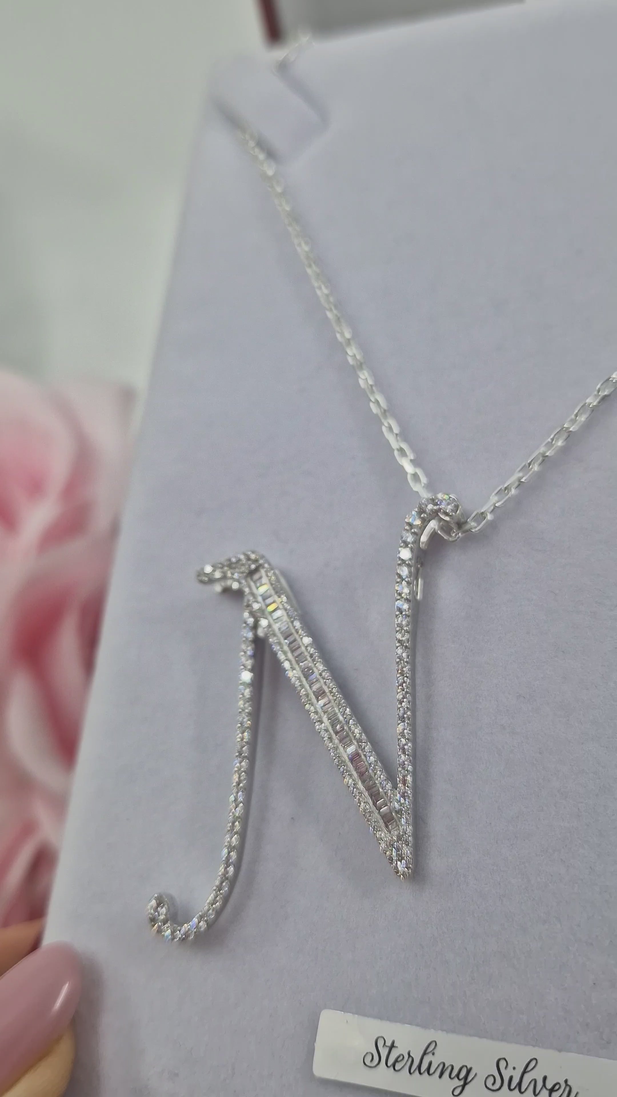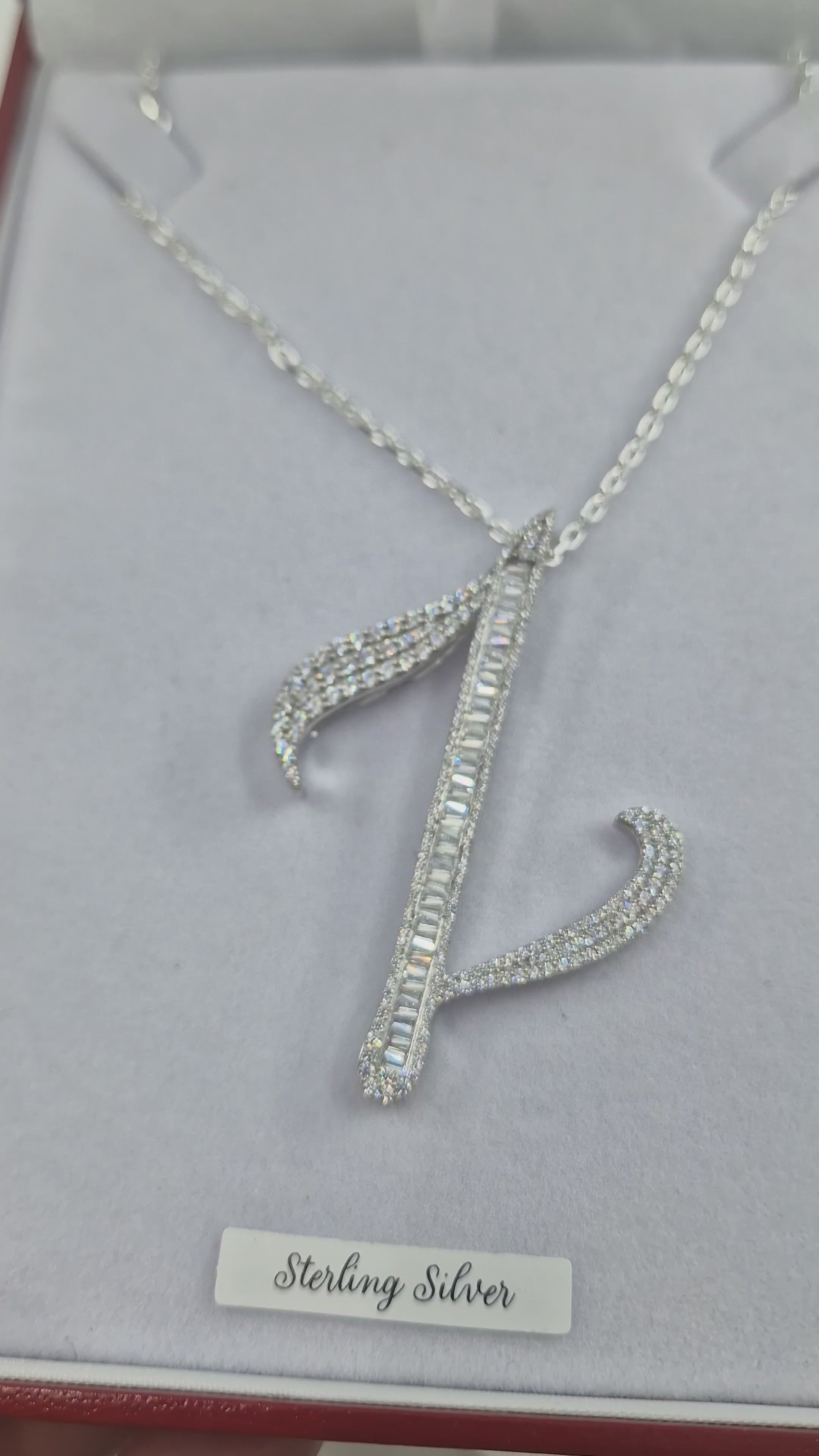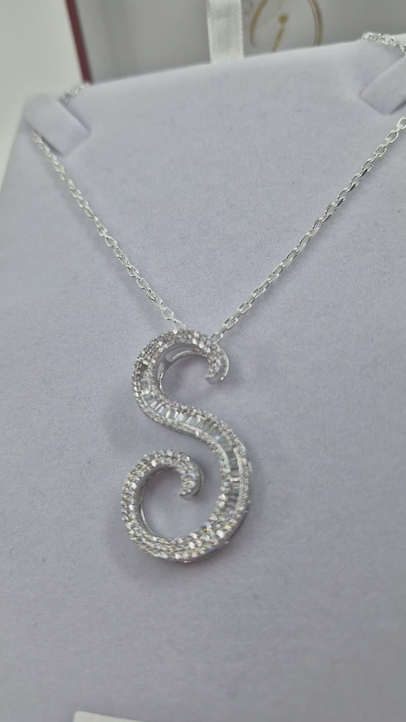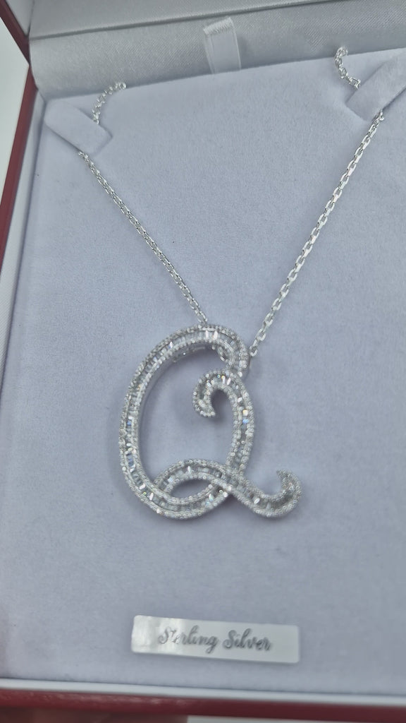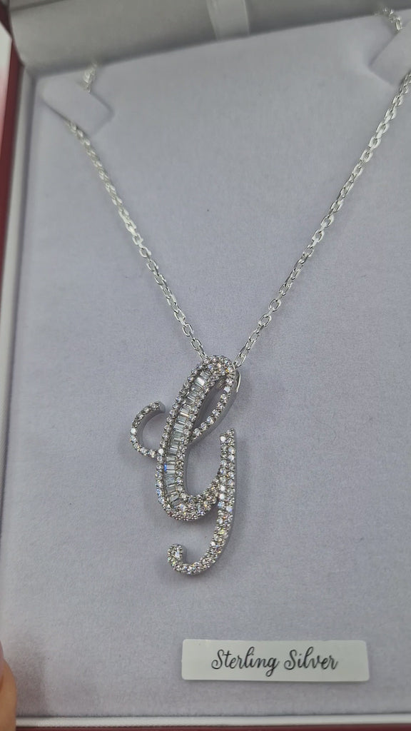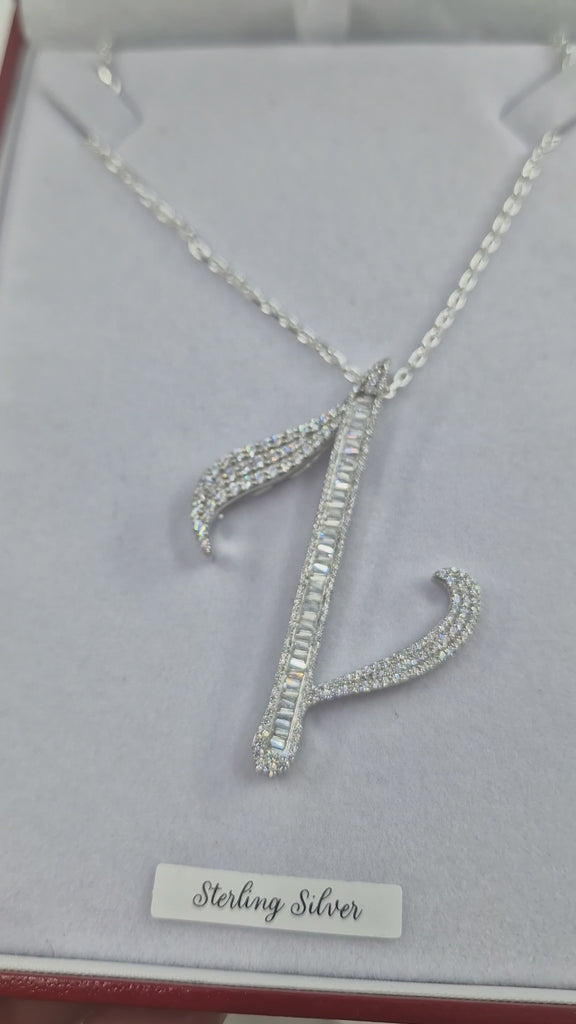 Large Baguette Sterling Silver CZ Baguette Initials & Pendant & 18" Chain