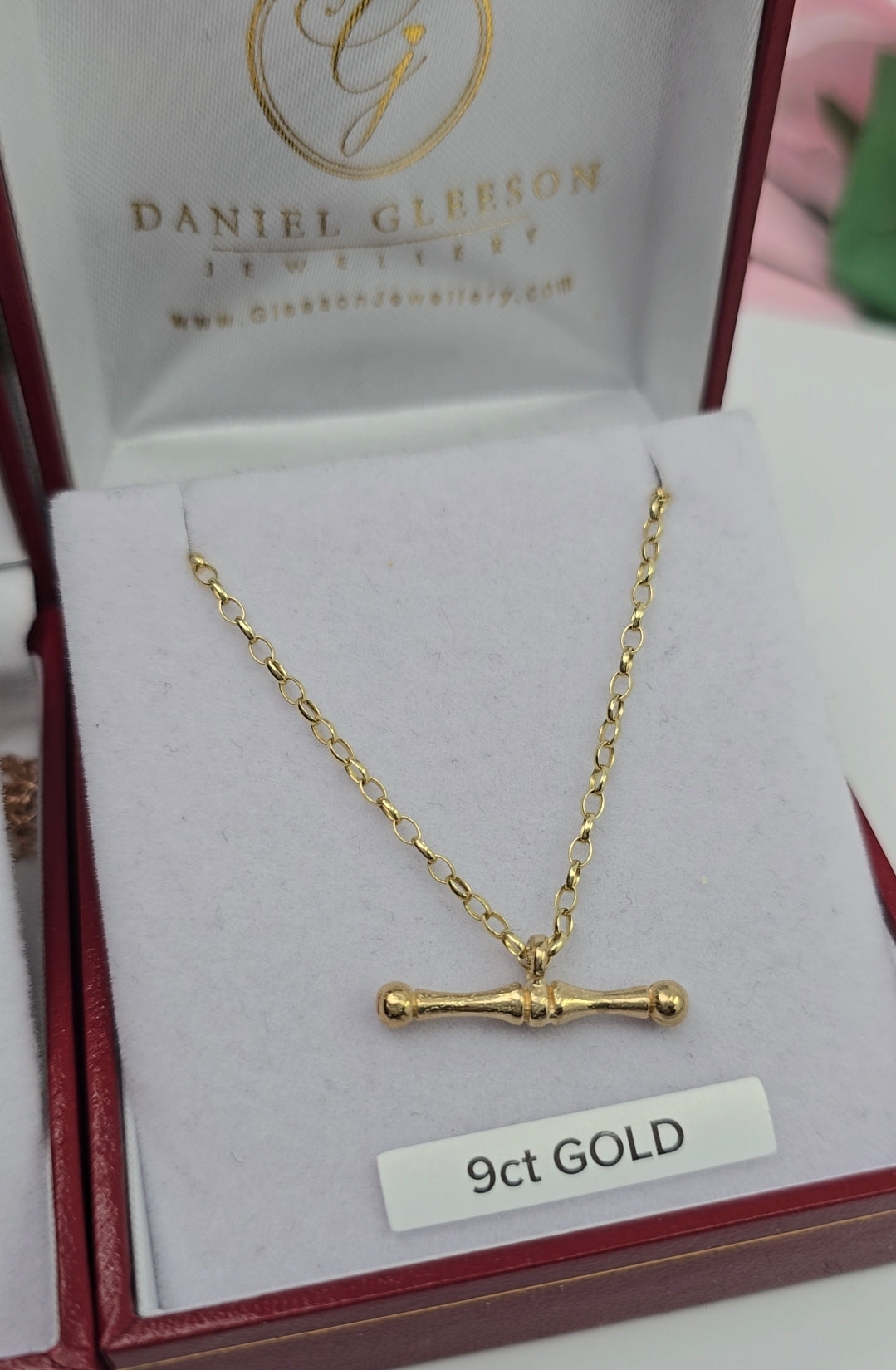 9ct Yellow Gold Solid T-Bar & 18" Chain