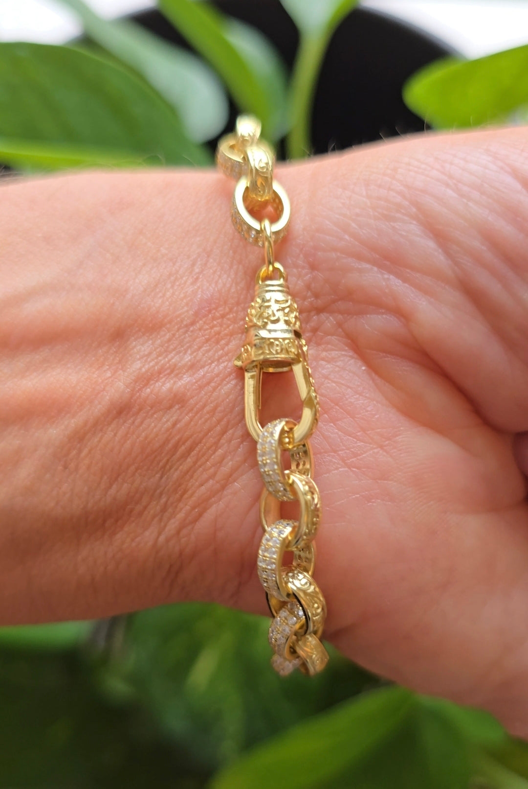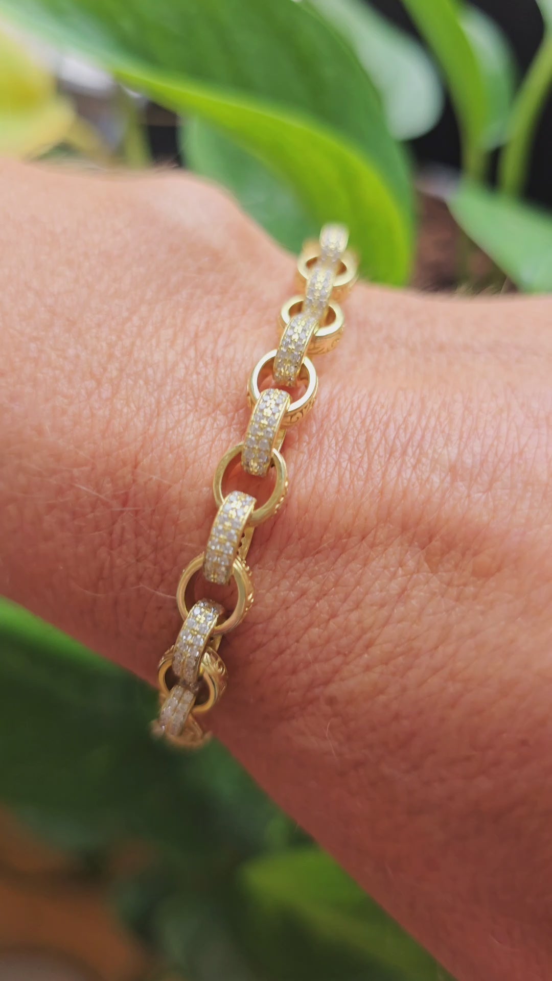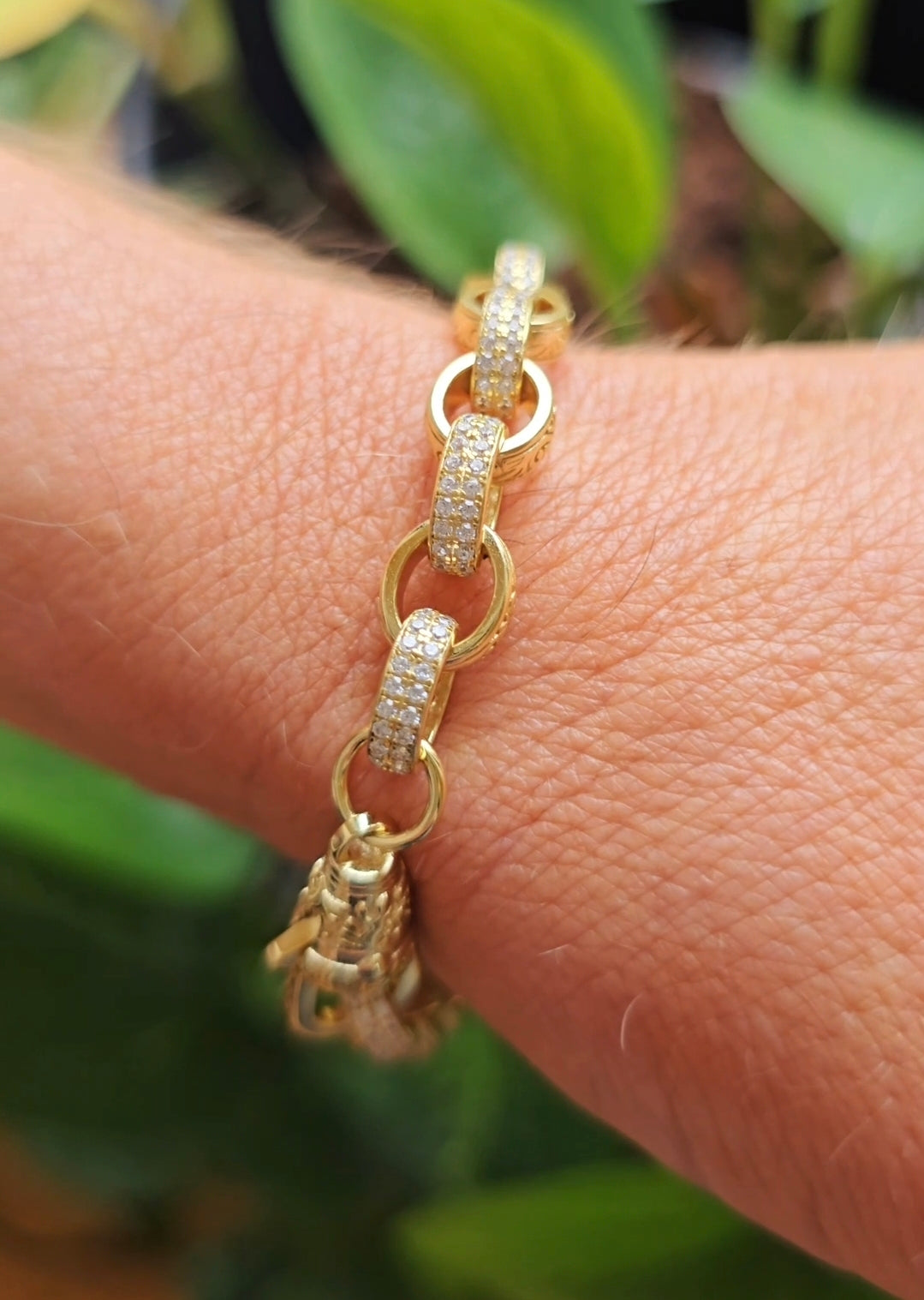 9mm Gold on Sterling Silver CZ Oval link Belcher Bracelet