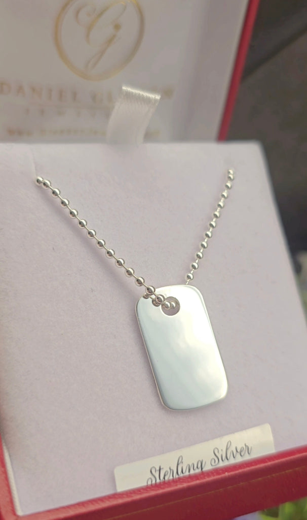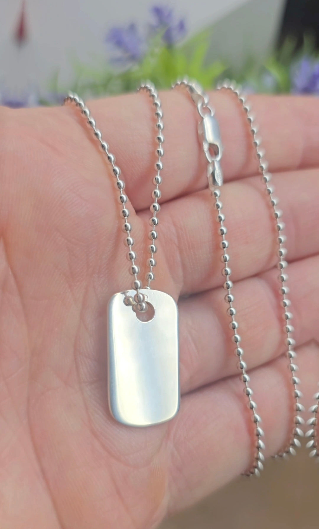 Sterling Silver Solid ID Dog Tag Disc & 20" Chain / Necklace