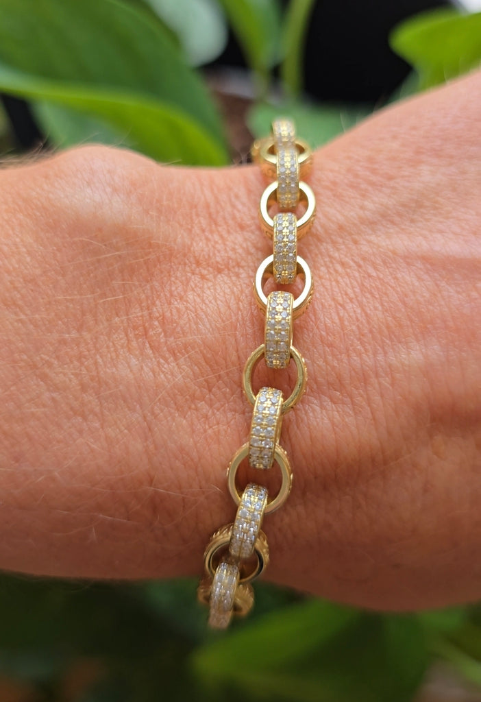 9mm Gold on Sterling Silver CZ Oval link Belcher Bracelet