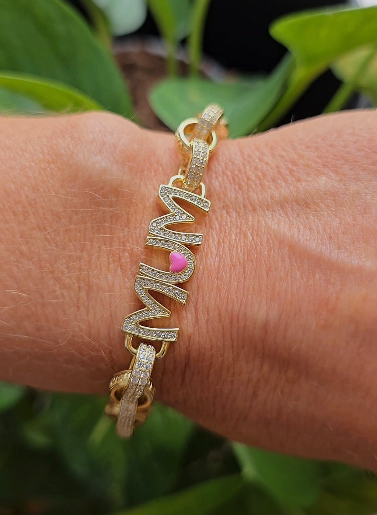 Sterling Silver 'Chunky' 9mm Heart link CZ Bracelet