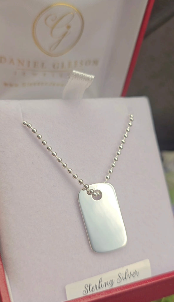Sterling Silver Solid ID Dog Tag Disc & 20" Chain / Necklace