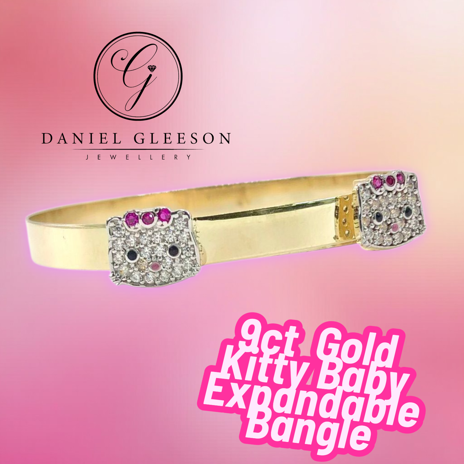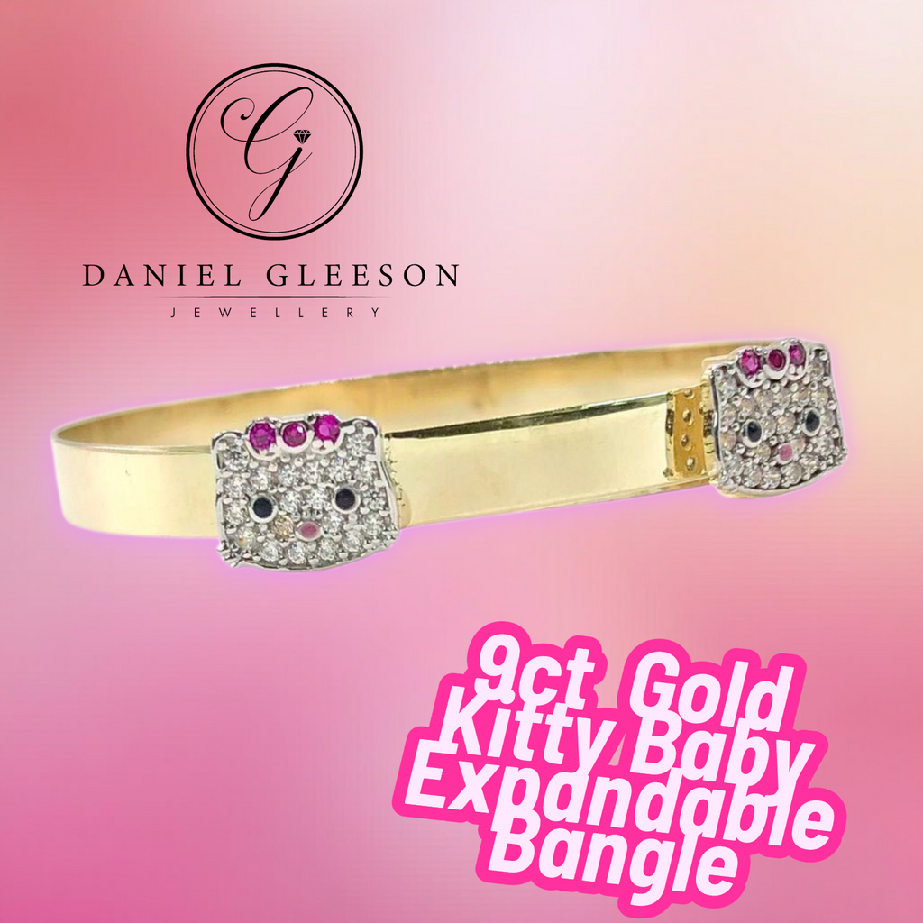 9ct Gold Kitty Expandable CZ Baby Bangle